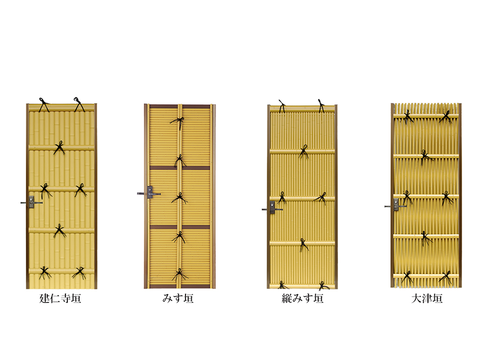 天然の建仁寺竹から型取りし、本物に近い質感と立体感を再現した、あやパネルシリーズ。