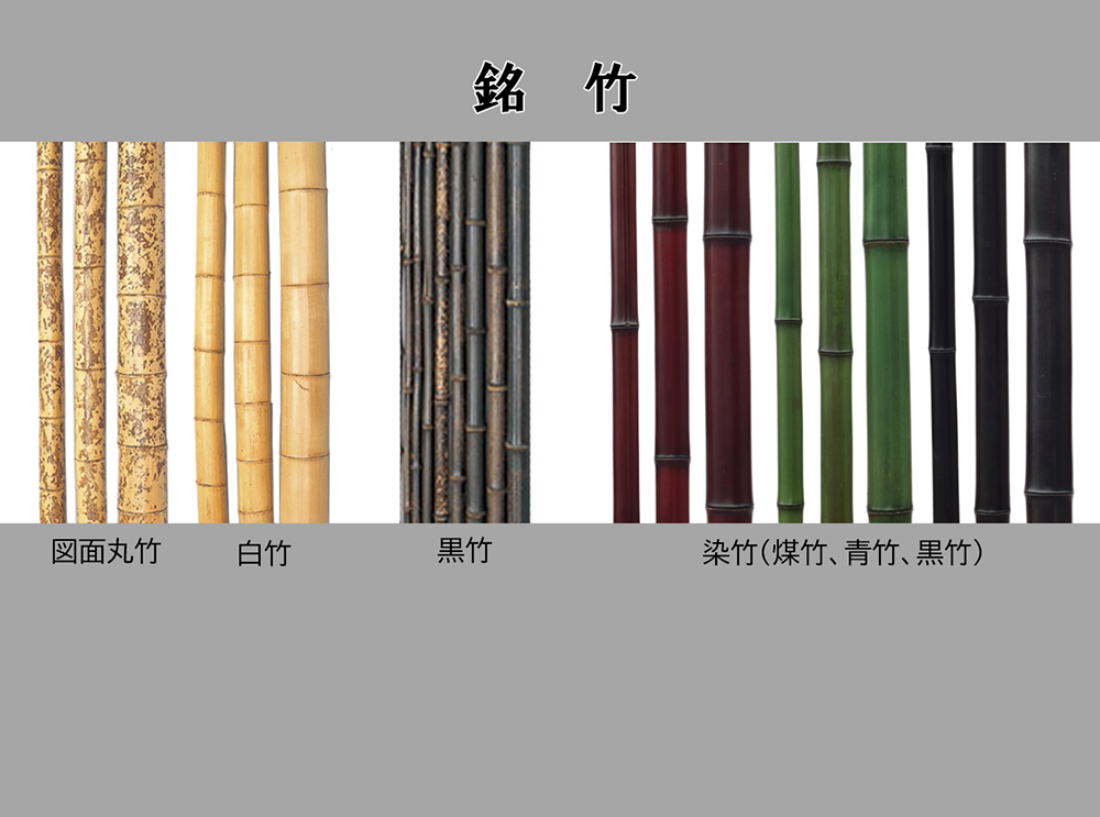 色、太さ、風合い・・・・豊富な種類の竹からお選びいただけます。