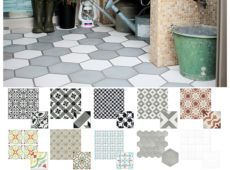 セラミックタイルのような表面がツルツルした物とは違い、セメント特有のマットな質感で、肌触りが良いのが特徴です。全て手作りによる生産になるため、独特な味わい、温かみが感じられるタイルです。今もなお200年に渡り変わらぬ製法で作り出されるセメントタイルは、洗練されたデザインで優雅な空間を演出するアイテムです。